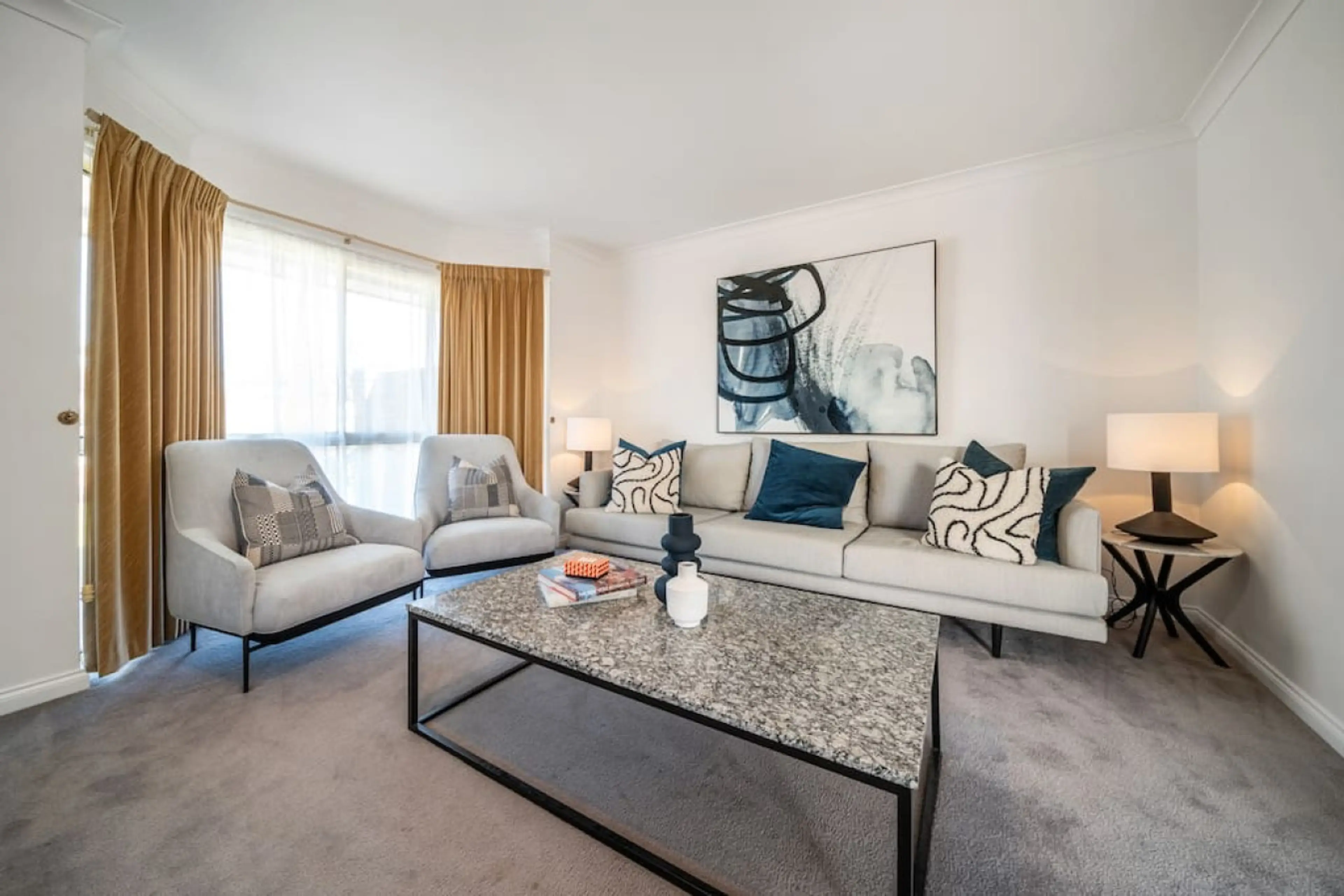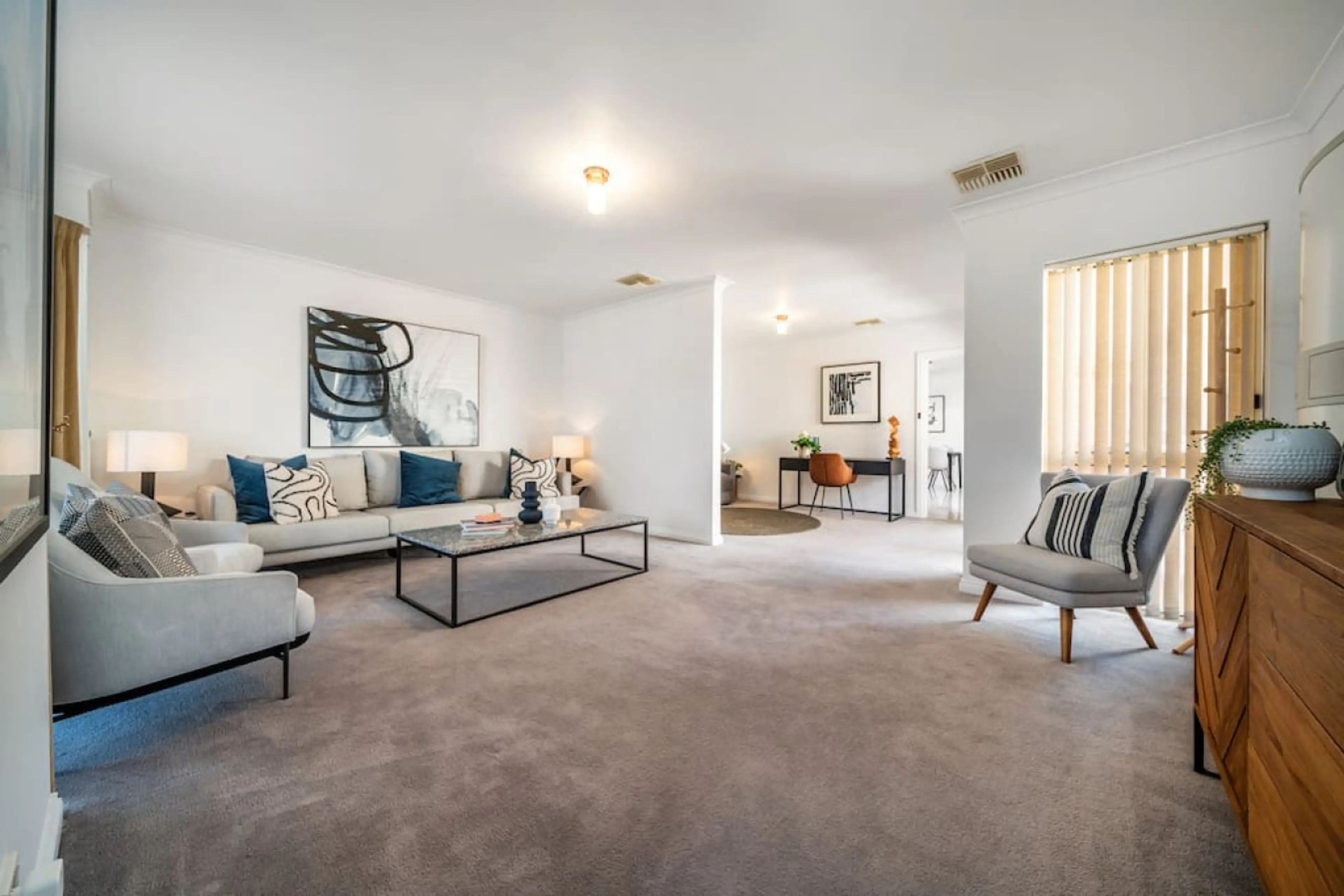 Designed for easy, comfortable living, this home pairs soft carpeted floors with a calm, practical layout that suits longer stays, families, or small groups travelling together. A spacious main lounge welcomes you in, where a large sofa and armchairs create an easy setting for conversation, movie n...