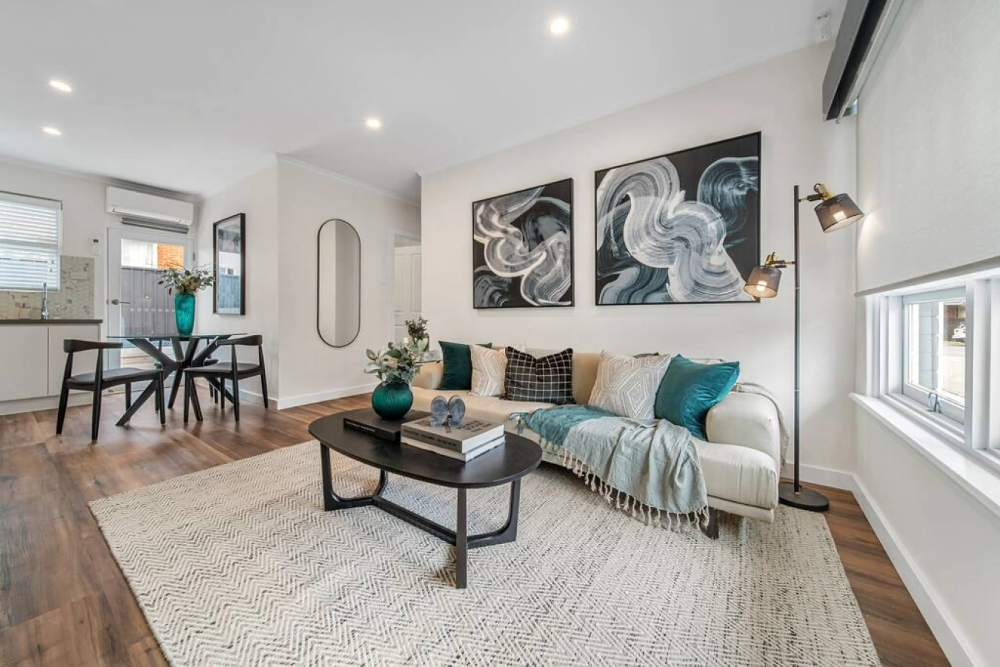 Designed with balance and comfort in mind, this single-level unit pairs modern finishes with a calm, inviting atmosphere. The open-plan living and dining area feels bright and effortless, framed by warm timber floors and soft textures that encourage you to slow down. Settle into the sofa for a relax...