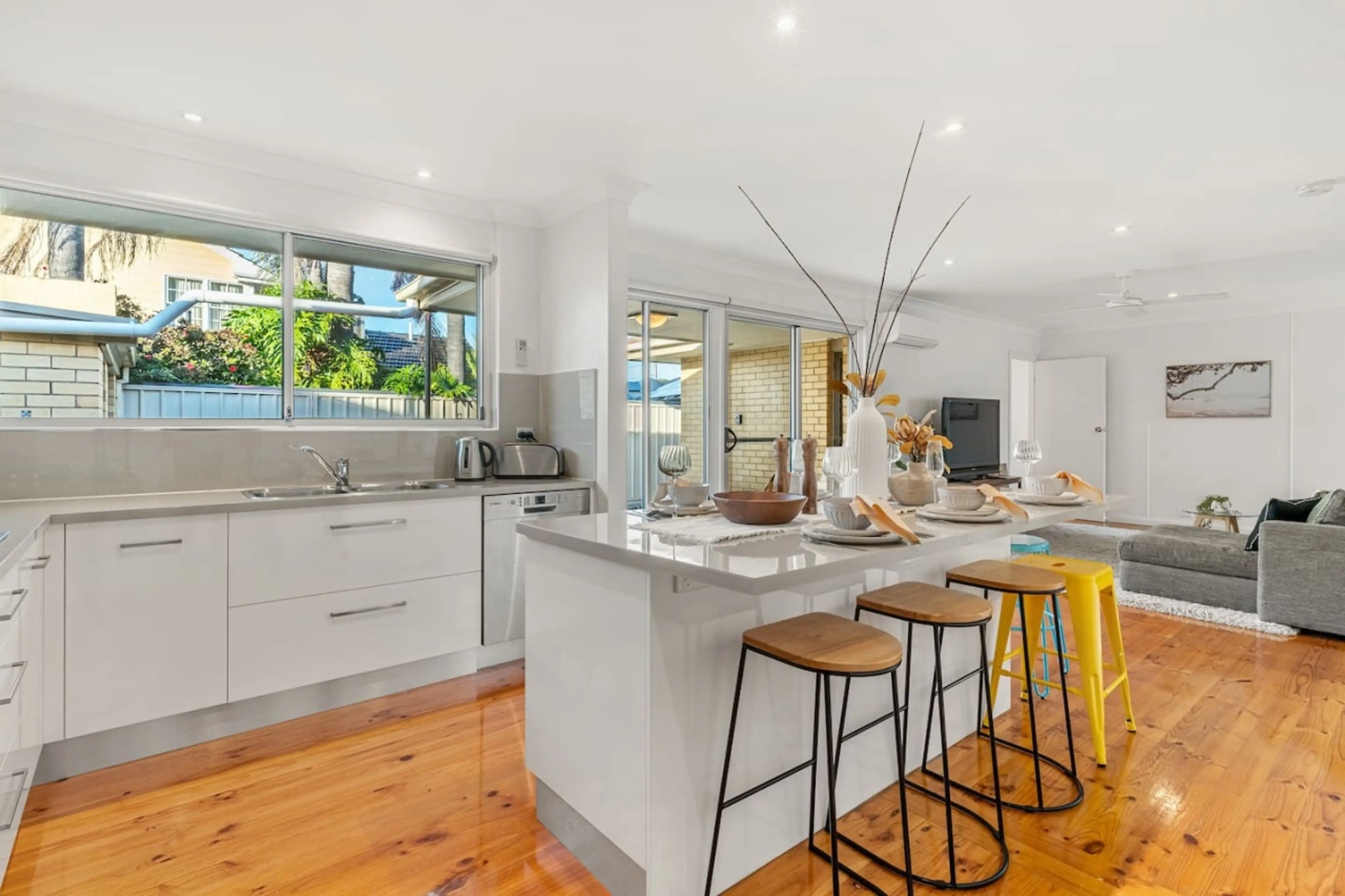 Light-filled interiors and relaxed coastal tones create an easygoing base just moments from the shoreline. The living area invites you to settle in after a day at the beach, with a comfortable chaise lounge positioned around the Smart TV for relaxed evenings indoors. Ceiling fans and split-system ai...