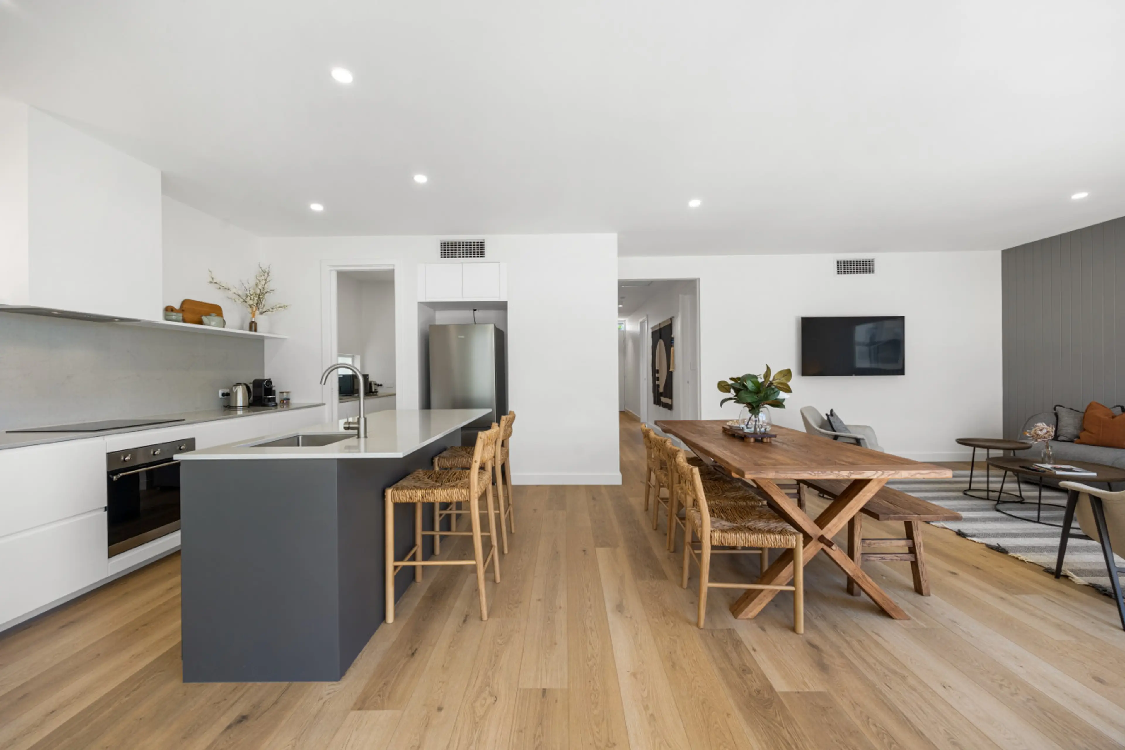 This thoughtfully designed home offers a relaxed and versatile stay, combining two self-contained spaces that allow guests to come together or retreat in comfort. Light-filled interiors, warm timber floors, and soft neutral tones create an inviting, easygoing coastal atmosphere throughout. The down...