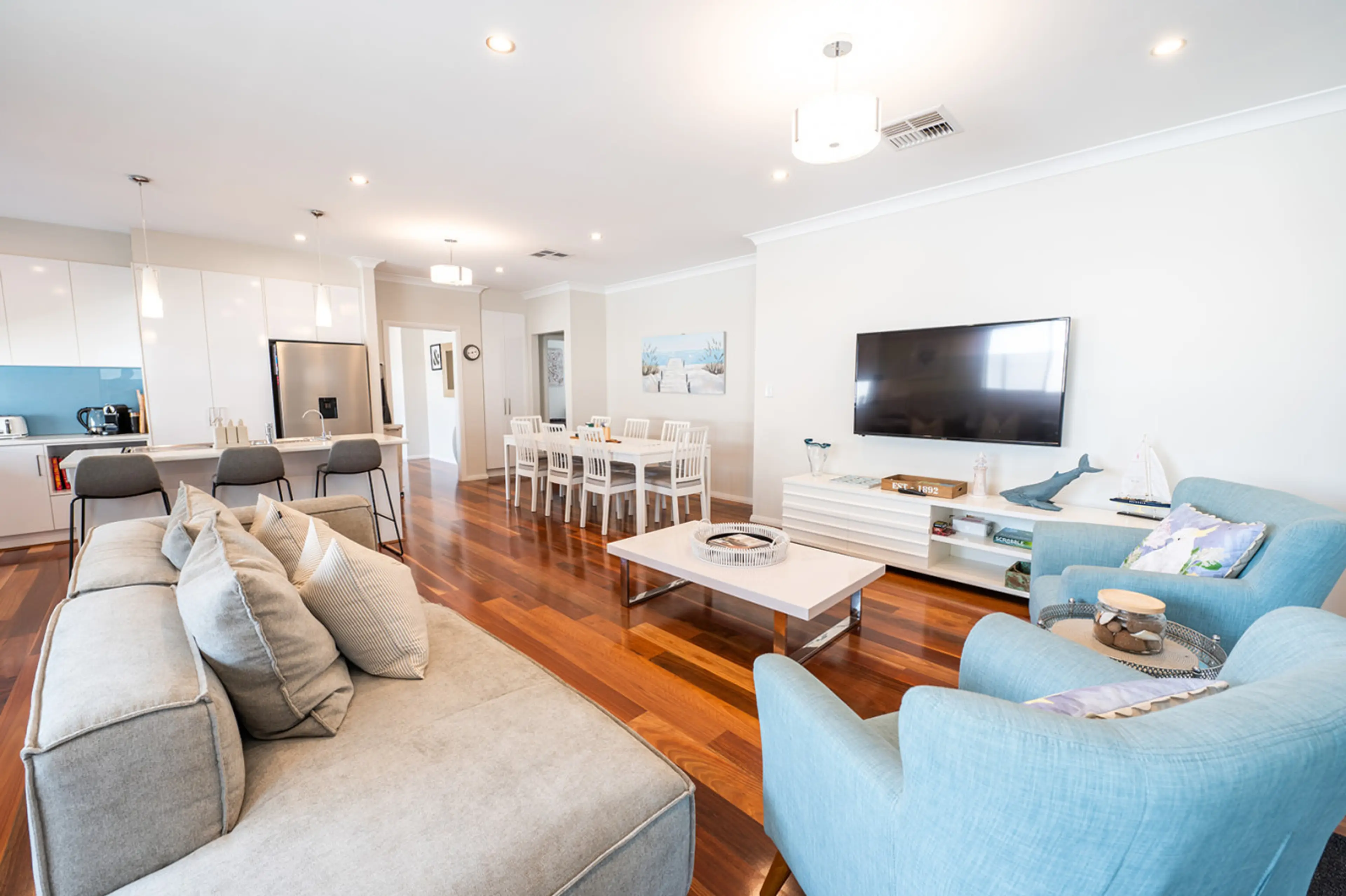 Relax with the whole family at this peaceful place to stay. Beautifully positioned across the road from the lake & Boulevard Cafe ; 300m walk to Beach. Family or couples retreat. This property is Victor Harbour location. Great size family house with 3 bedrooms. Positioned across the street from th...