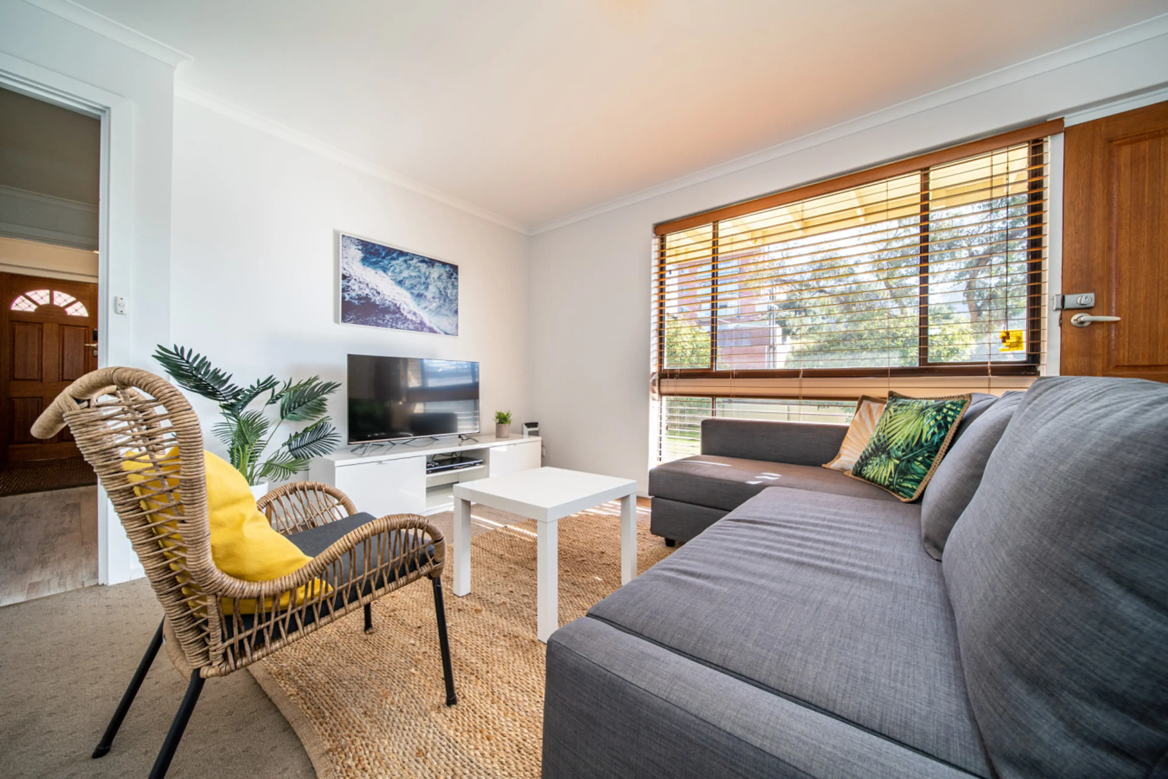 Set across two levels, the home has a relaxed coastal feel, with light interiors and practical spaces designed for easy beachside living. Downstairs, the living area welcomes you with a chaise sofa and natural light filtering through wide windows. It’s an easy spot to unwind after a day by the ocea...